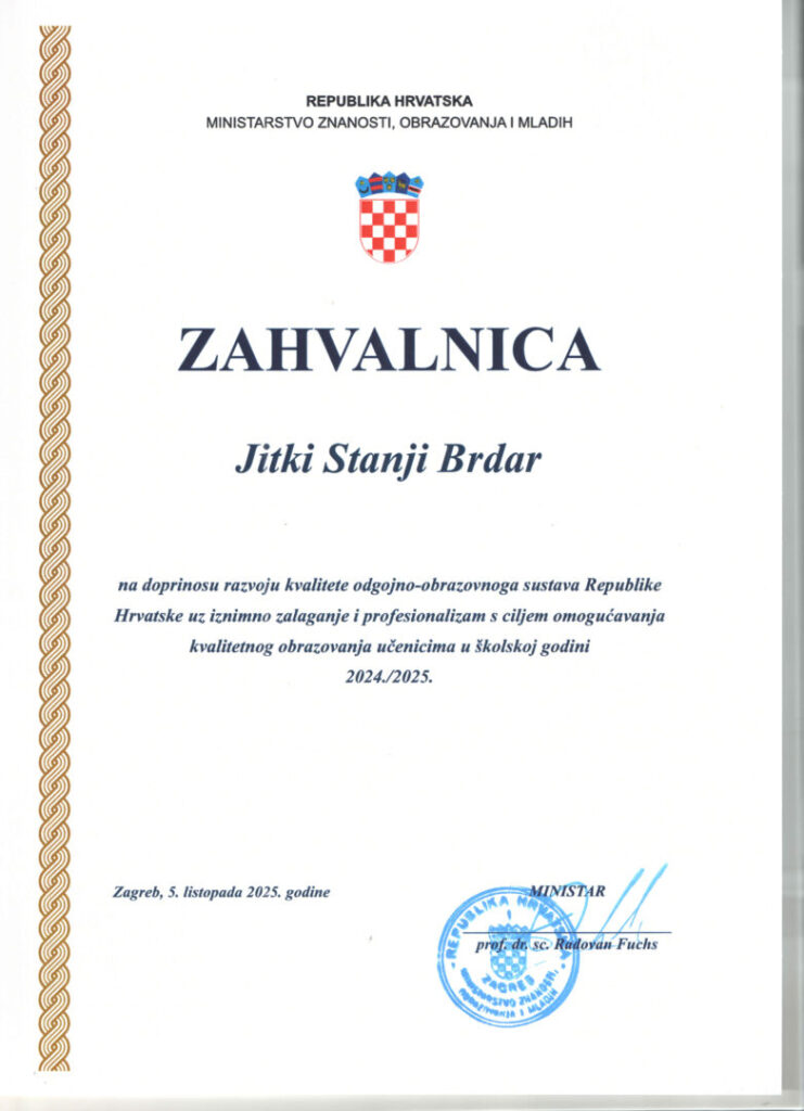U příležitosti Mezinárodního dne učitelů Ministerstvo vědy, vzdělávání a mládeže Republiky Chorvatsko každoročně oceňuje pedagogy, kteří se ve své práci mimořádně osvědčili. V školním roce 2024/2025 nezávislá komise vybrala 522 nejúspěšnějších učitelů z celé země.