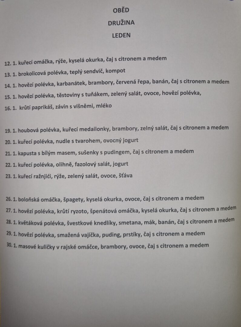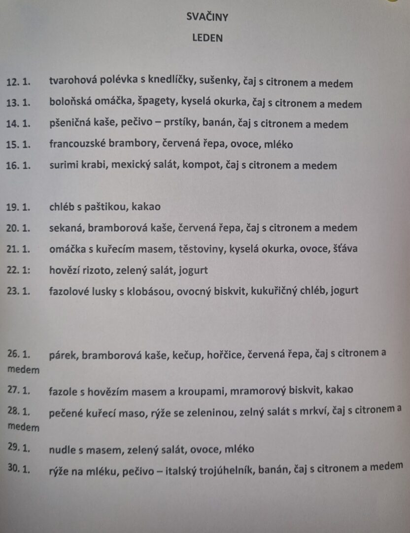 Jídelníček – leden 2025